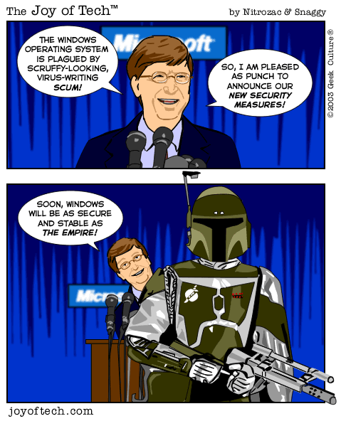 | Join the JoyList! Nitrozac and Snaggy would like to keep you informed of any Joy of Tech and Geek Culture news, with a very occasional email newsletter.