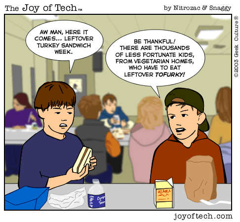 | Join the JoyList! Nitrozac and Snaggy would like to keep you informed of any Joy of Tech and Geek Culture news, with a very occasional email newsletter.