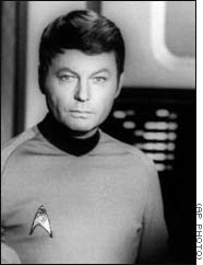The End of an Era... After an extended illness, Actor DeForest Kelley, who portrayed crusty Dr. Leonard "Bones" McCoy on Star Trek, died on June 11th, Stardate 1999. He was 79. Although perhaps not the most popular character on the series, he was crucial to the success of the series, playing the human foil to Mr. Spock, and the voice of humanity in a future time. Upon hearing of the passing, Spock showed no hint of the long running "conflict" between Bones and himself, in fact, he seemed almost emotional. Said Spock "He represented humanity and it fitted him well. He was a decent, loving, caring partner and will be deeply missed." (it has long been speculated that Spock has always admired Dr. McCoy, perhaps even envied his emotional capacity.) An emotional Captain Kirk was quoted "DeForest Kelly was a Southern gentalman all his life, a kind, good, wonderful friend. I will miss him." Sulu added "Despite the character he played, he was a sweet shy, and gentle man." In addition to "Star Trek," DeForest made appearances on dozens of television shows, including "Gunsmoke" and "Bonanza." His movies, besides the Star Trek series, included "Gunfight at the O.K. Corral". Kelley is survived by his wife of nearly 55 years, Carolyn and millions of fans all over this galaxy. |