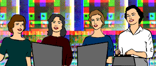 Strong character development is a hallmark of After Y2K. This page features the main characters of the strip with links to their first appearances. Many of the characters have "Getting to knows...", which are entire comics devoted to biography of the character. And be sure to check out the Cameos page too, for look at some of the famous geeks that have found their way into After Y2K. |