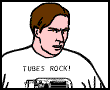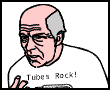 ![]() ![]() Seen here both as a young man and as an old man, he's a big vacuum tubes advocate, and considers everything else pretty much "crap", especially those horrible transistors! Tube's life changes after receiving a Tubes Rock t-shirt from his future self! Shortly afterwards his job changing vacuum tubes is rendered obsolete by the arrival of the transistor. Becoming obsessed, he gathers and hoards the world's supply of vacuum tube technology, waiting for an opportunity to restore tubes to their former glory. His chance comes after the Y2K bug destroys all transistors. His company, Tubes Rock Inc. quickly becomes a giant as civilization is re-built using tube technology, but dark and terrible secrets lie behind his success. first appearance |