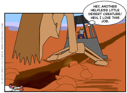 It doesn't matter does it, since undoubtedly that backhoe is driven by the alien life form seen in "Killdozer", ... you know what they say in the construction biz...Cats have nine lives. |
