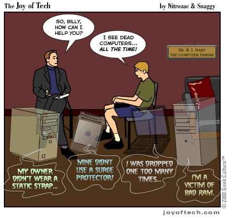 Welcome to the Joy of Tech... illustrated by Nitrozac and written by Nitrozac and Snaggy. It's a little bit simpler in style than our other comic After Y2K, and a little more topical. We hope you enJoy!
