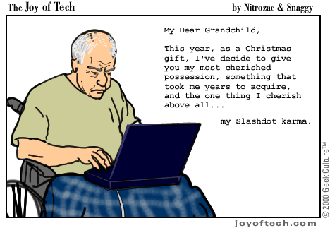 | Welcome to the Joy of Tech... illustrated by Nitrozac and written by Nitrozac and Snaggy. It's a little bit simpler in style than our other comic After Y2K, and a little more topical. We hope you enJoy! |