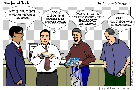 | Welcome to the Joy of Tech... by Nitrozac and Snaggy. It's a little bit simpler in style than our other comic After Y2K, and a little more topical. We hope you enJoy! |