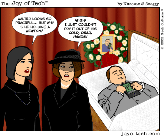If you're using a Mac and a newer version of Explorer, here's a neat trick courtesy of MacMerc. Drag the above little image to the top tool bar of your browser, it should "stick" afterwards. Now you have a graphical link to the Joy of Tech, one that will update everytime a new comic is uploaded. (You may have to refresh the image manually if it's in your cache.) If you need to delete or move it it, just control button/click and hold, then select delete, or just Command/drag it to the trash.