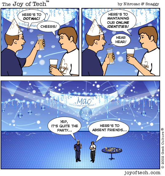 Today's comic is brought to you in part by SuperFans. Relevancy Links:Apples .Mac Subscribers Top 100,000, 2.1 Million Jump .mac Ship, iTools users abandon .Mac |