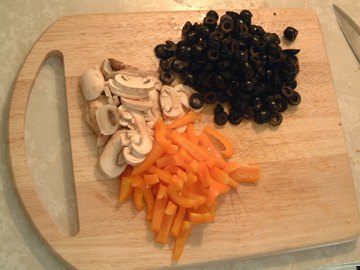 Open the can of sliced black olives, drain, and set aside. You can also use olives from a jar, just cut them into round shapes if they are whole.