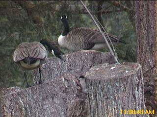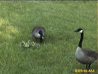 The Canada Geese that were nesting in the tree had their family hatch! In a very interesting event, a number of geese came over to check out the new chicks. At first we thought it was an attack, there was quite a commotion and lots of honking. It seemed like at least two of the geese were protecting the mother, standing as guards right up there on the nest, while the dad was down below keeping others away. |
